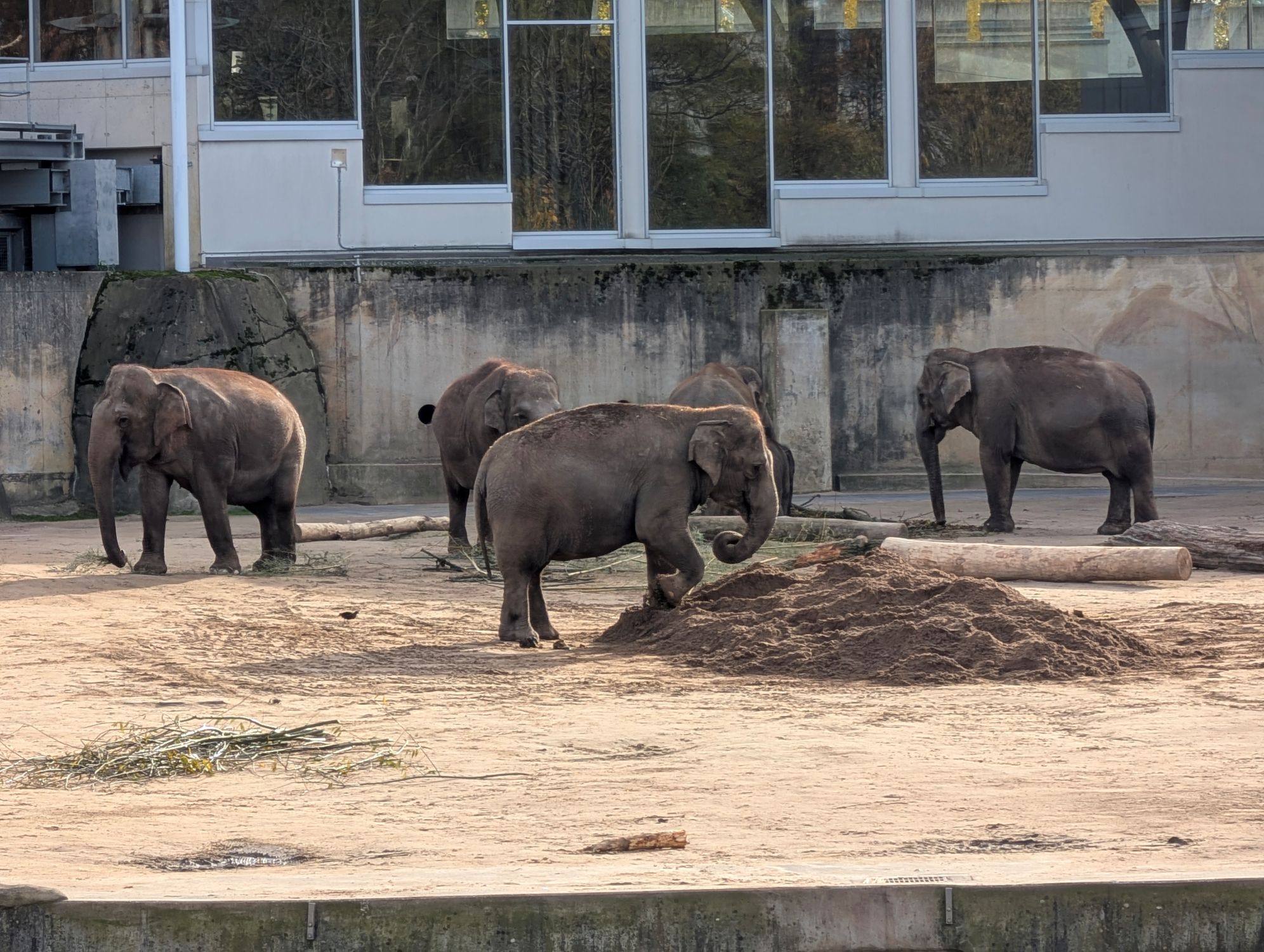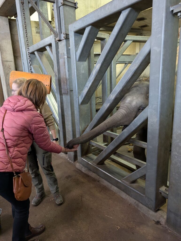 Ein besonderes Highlight war der Besuch des Elefantentrainings. Die Gruppe durfte das Elefantengehege betreten und miterleben, wie die Pfleger:innen mit den Elefanten arbeiten. Am Ende gab es für alle, die wollten, sogar die Gelegenheit, einen Elefanten zu füttern – ein Erlebnis, das sicher lange in Erinnerung bleibt.
